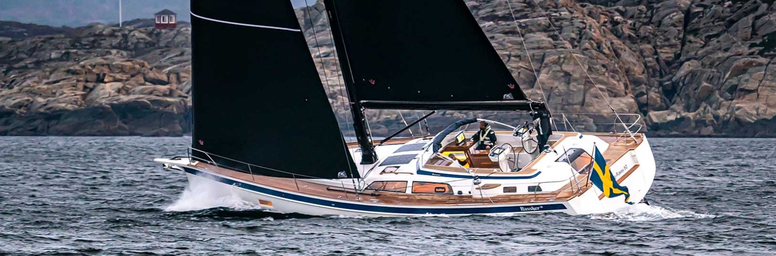 The Hallberg‑Rassy 44 represents a new generation of fast, comfortable cruisers from the renowned Swedish yard. German Frers’ optimised hull, with its plumb bow and upright transom, delivers excellent passage‑making. A fixed bowsprit improves anchoring and asymmetric handling, while the lowering transom platform provides superb bathing and dinghy access.